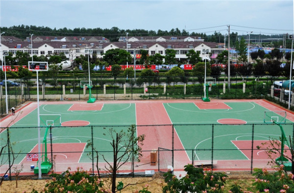 此次投入使用的籃球場(chǎng)均按照國(guó)際標(biāo)準(zhǔn)尺寸建設(shè),采用硅-PU地面,具有上硬下彈、緩沖減震、防滑起動(dòng)等特點(diǎn),既可以增加運(yùn)動(dòng)緩沖,減輕腳踝、關(guān)節(jié)、韌帶的傷害,又有效解決因地面受濕而引起的打滑現(xiàn)象,保證運(yùn)動(dòng)中腳感舒適,是一種健康型專業(yè)彈性合成球場(chǎng)地面系統(tǒng)。籃球場(chǎng)還配置了移動(dòng)式、配有機(jī)玻璃籃板和彈性籃圈的籃球架以及8組球場(chǎng)專用燈光設(shè)備。