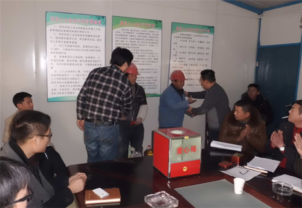 園區(qū)公舍三期西楚金地和白領(lǐng)公寓項(xiàng)目是今年園區(qū)的重點(diǎn)工程,為創(chuàng)建文明工地,構(gòu)建和諧園區(qū),營(yíng)造關(guān)愛(ài)幫扶、互助互濟(jì)的良好氛圍,自開(kāi)工以來(lái),項(xiàng)目部辦公室就設(shè)立了募捐箱,并在元旦即將到來(lái)之際,用募集到的善款幫助工地上生活困難的建筑工人,讓困難工人群體感受到社會(huì)的溫暖和正能量,增強(qiáng)其歸屬感,在工地、在園區(qū)也能感受到家的溫馨。