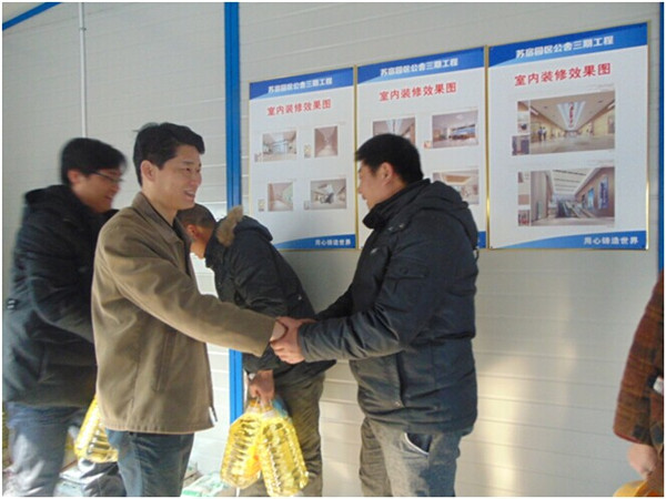 近日,開發(fā)公司黨支部開展春節(jié)前夕走訪慰問活動,對公司在建工程工地的10余名生活困難工人進行了慰問,為他們送上慰問品,帶去節(jié)日的問候。公司黨支部書記、副總裁劉建華參加活動。