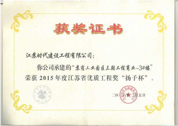 江蘇省“揚子杯”優(yōu)質(zhì)工程獎是我省建設(shè)工程質(zhì)量最高榮譽獎,為省人民政府確定的行政獎勵, 代表了我省當(dāng)前工程建設(shè)質(zhì)量的最高水平。揚子杯每年評審一次,評選對象為我省境內(nèi)、已經(jīng)建成并投入使用的各類建設(shè)工程。該獎的設(shè)立旨在促進(jìn)建設(shè)和施工單位提高工程質(zhì)量水平、增強建筑精品意識。