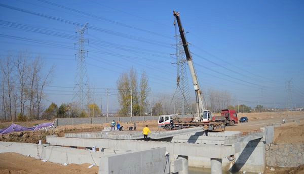 近日,可達(dá)科技配套項(xiàng)目天柱山路跨民便河橋梁10米空心板梁正式開始吊裝。