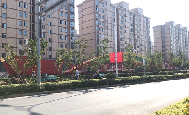近期,走在道路上,園區(qū)居民會(huì)發(fā)現(xiàn)青海湖西路東入口南側(cè)設(shè)置一座建國(guó)70周年景觀(guān)雕塑,同時(shí)道路兩側(cè)路燈桿件懸掛國(guó)旗、中國(guó)結(jié)和70周年標(biāo)識(shí)的中國(guó)結(jié)等各式各樣的節(jié)日氛圍。