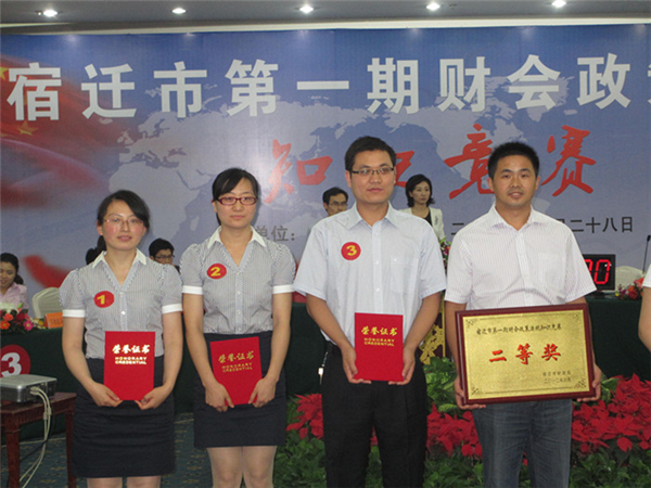 6月28日,宿遷市第一期財(cái)會(huì)政策法規(guī)知識(shí)競(jìng)賽在國(guó)際飯店舉行,經(jīng)過(guò)激烈的角逐,園區(qū)財(cái)政局代表隊(duì)獲二等獎(jiǎng)。