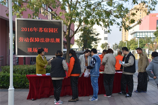 為進(jìn)一步優(yōu)化園區(qū)用工環(huán)境,引導(dǎo)職工理性維權(quán),11月11日上午,園區(qū)勞動(dòng)部門(mén)選擇了在企業(yè)員工集聚區(qū)——園區(qū)公舍開(kāi)展勞動(dòng)保障法律法規(guī)現(xiàn)場(chǎng)咨詢(xún)活動(dòng),通過(guò)發(fā)放宣傳資料,面對(duì)面答疑解惑等方式普及勞動(dòng)保障相關(guān)知識(shí)。