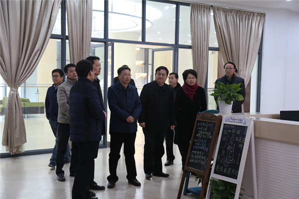 薛啟書一行饒有興致地參觀了校園環(huán)境、行政大廳和圖書館,詳細了解了學校的辦學規(guī)模、文化建設和辦學理念等情況,對學校建筑設計風格表示贊賞,對學校首年開班取得的成績給予高度肯定。他指出,宿遷有能力辦優(yōu)質的教育,學校一定要不斷提高辦學質量和辦學品味,全力辦好人民滿意的教育。